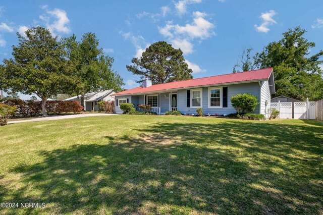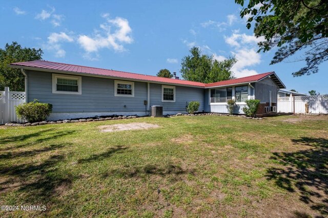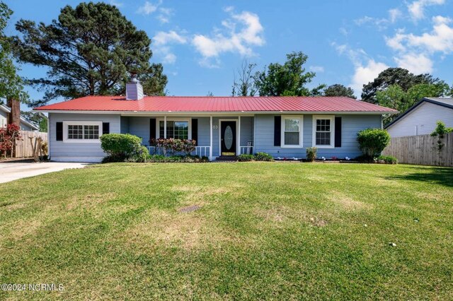 BACK ON MARKET DUE TO NO FAULT OF SELLER Welcome to this inviting, turnkey ready and recently renovated single-story home with four bedrooms and two full bathrooms located in a sought-after neighborhood. The home is right down the road from ample shopping, Publix, doctors' offices, a movie theater, endless restaurants, schools, and a short drive to military bases and beaches. This beautiful home features recently installed waterproof LVP floors, fixtures and fresh paint throughout. Step under the covered front porch and upon entry, you are greeted by a spacious living room with a cozy fireplace, seamlessly leading to a formal dining area, perfect for entertaining. The kitchen is adjoining the dining room and featuring plenty of charming wood cabinets and beautiful Corian countertops. The home has 4 spacious bedrooms with plenty of closet space and recently installed ceiling fans. The bathroom vanities have beautiful durable stone tops and recently installed fixtures. An added highlight to the home is the oversized sunroom with temperature control, perfect for family time and entertaining. The garage conversion for the fourth bedroom and sunroom enclosure were done in the 1990's and no permits were found. Step outside to the fenced backyard with two storage sheds, both with recent roof replacement and both with a power hook up. The home's metal roof ensures durability and peace of mind and HVAC was installed in 2017. Even better NO HOA. Don't wait to schedule your showing for this great house!